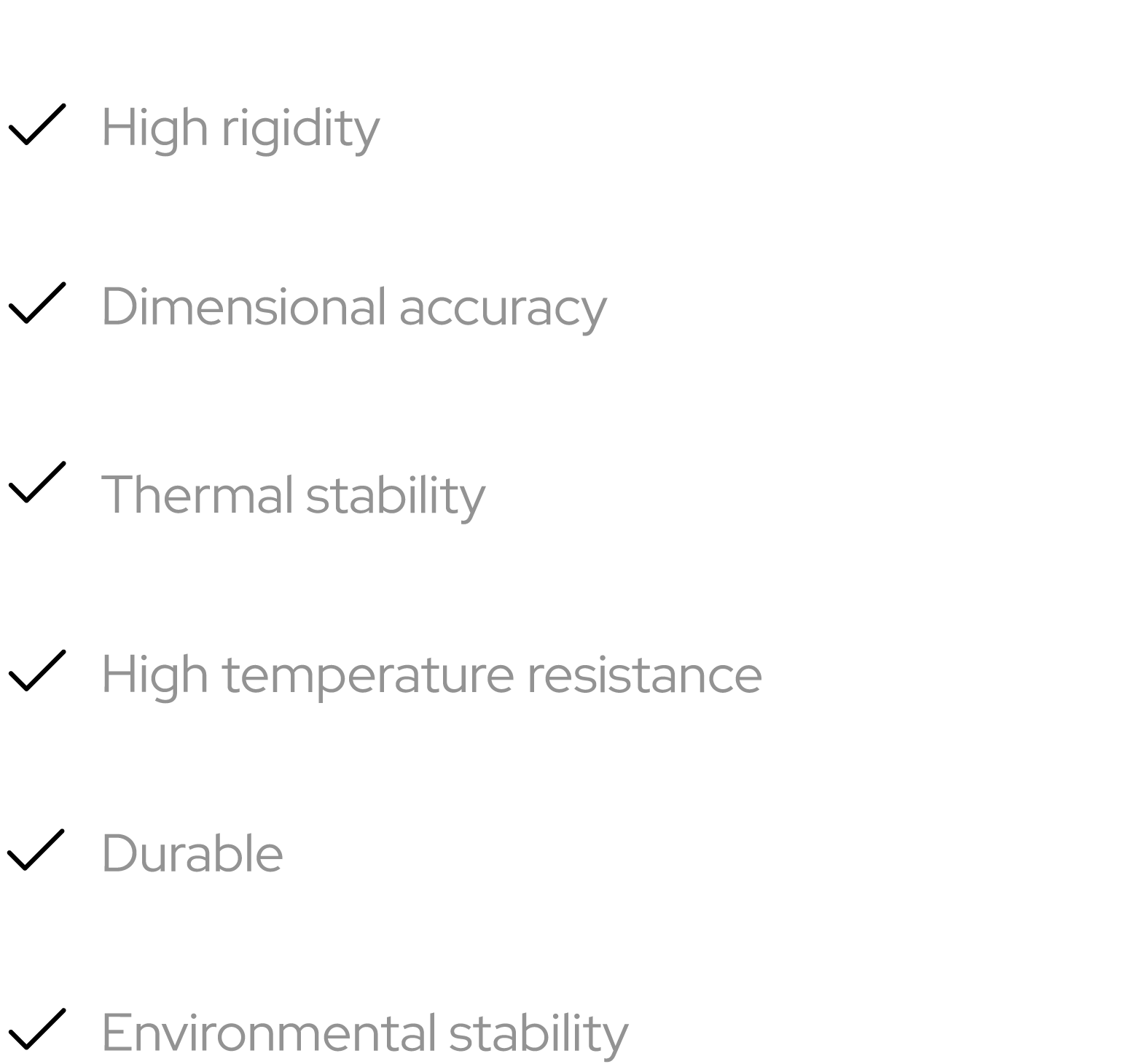 Rigid resin is a material filled with glass particles that provide parts of great stiffness and strenght that can withstand minimal deflection while keeping a smooth, polished surface finishing. It is most commonly used for manufacturing mounts, brackets, jigs, fixtures and other parts to simulate the stiffness of PEEK.