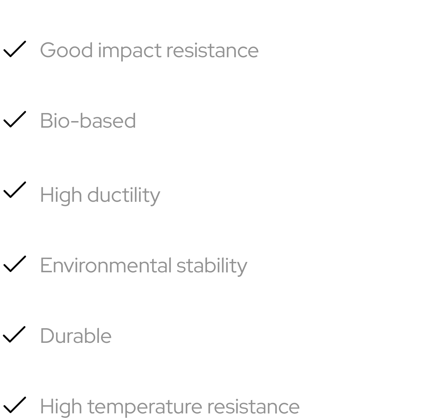 EON PA11 is a durable, bio-based material with excellent ductility. It combines durability with excellent ductility.